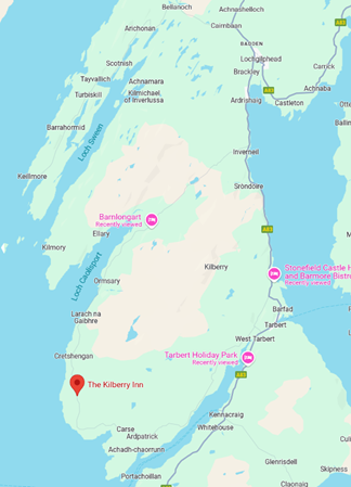 We are not the easiest place to get to, we are on a peninsular 30 minutes off the main Lochgilphead to Campbeltown road. Driving.